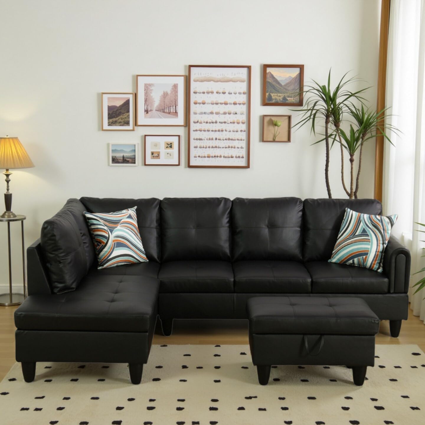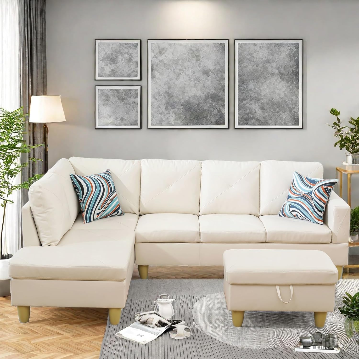 Price: (as of – Details) Osparple L Shaped Couch PU Leather Sectional Couches for Living Room 3 Pieces Modular Sectional Sofa with Chaise, Ottoman with Storage for Living Room and…